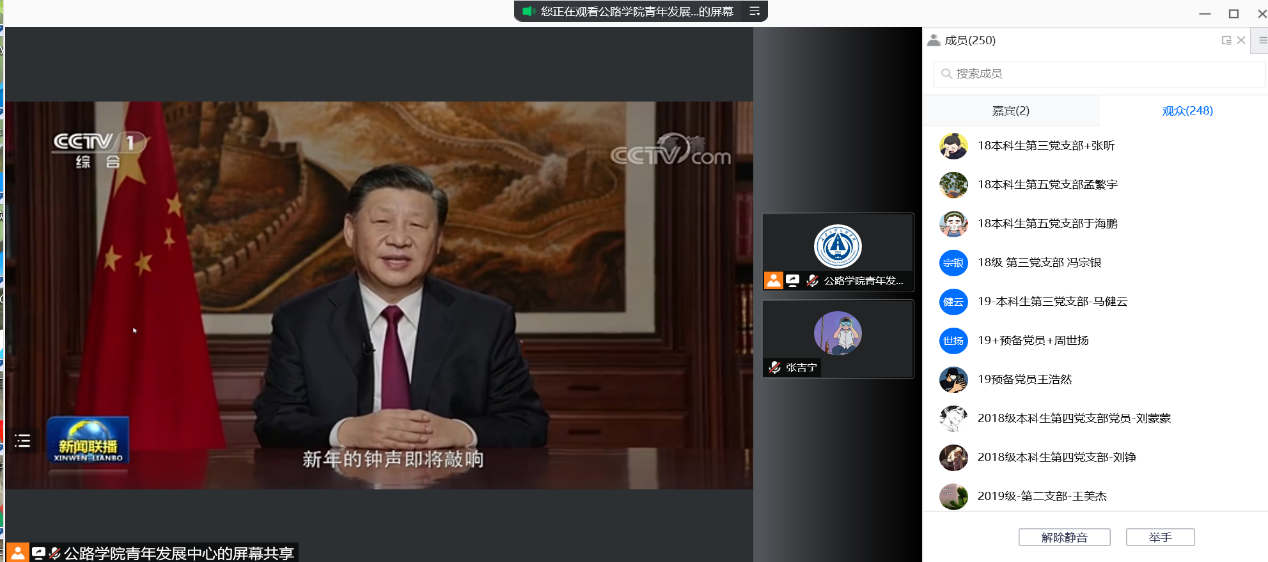 各党支部组织党员群众收看了国家主席习近平的新年贺词,感受过去一年伟大祖国的发展成就,坚定抗疫信心,共迎二〇二二。