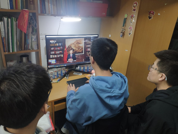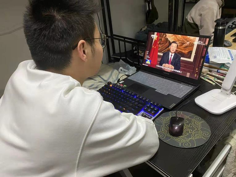 研究生党员在宿舍收看学习