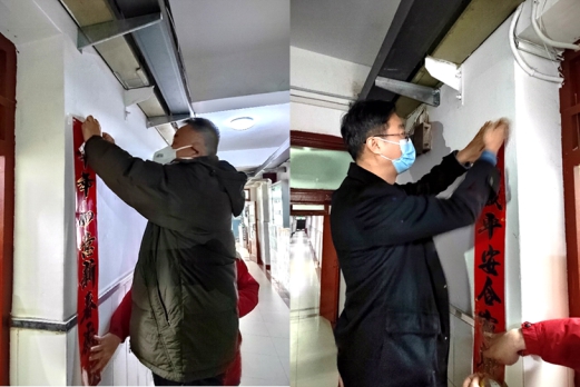 学院院长陈建勋、党委书记汪海年为同学贴春联
