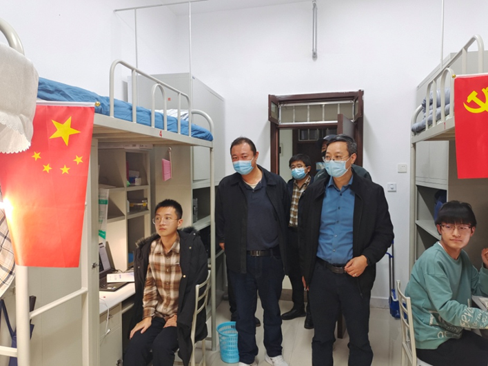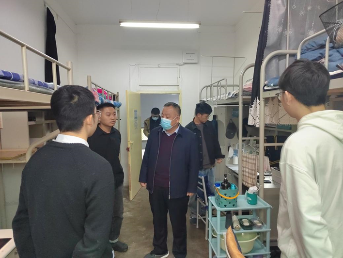 院长陈建勋、党委书记汪海年分别走访了南、北校区学生宿舍。