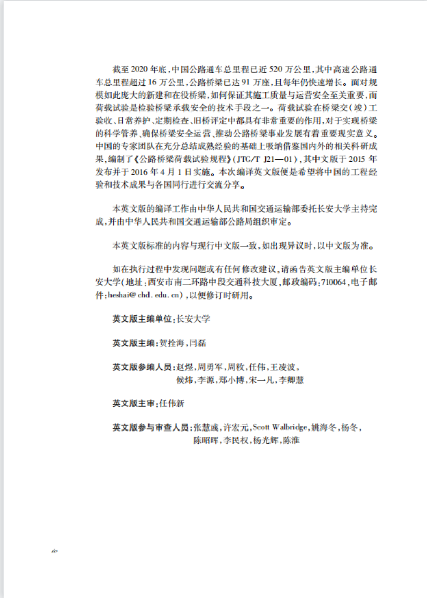 同时由贺拴海教授与闫磊副教授主译的《公路桥梁荷载试验规程》英文版[JTG/T J21-2015(EN)]于2022年1月19日发布。《公路桥梁荷载试验规程》(JTG/T J21-01)中文版由休闲小栈