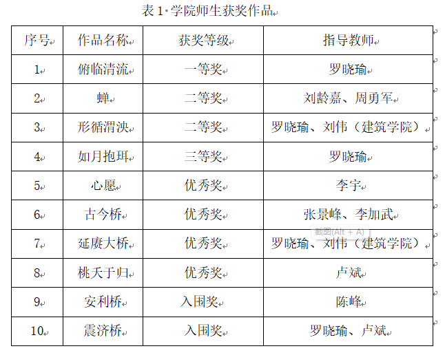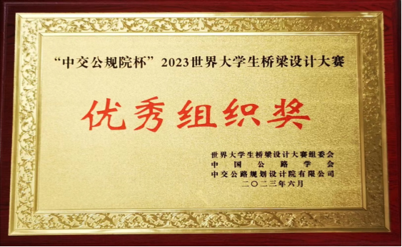 2023年6月17日,“中交公规院杯”2023世界大学生桥梁设计大赛总决赛暨颁奖典礼在武汉市光谷科技会展中心举行。学院师生作品获一等奖1项、二等奖2项、三等奖1项,另有4项作品获优秀奖、2项作品获入围奖。桥梁工程系刘龄嘉、周勇军和罗晓瑜获“优秀指导教师奖”,休闲小栈