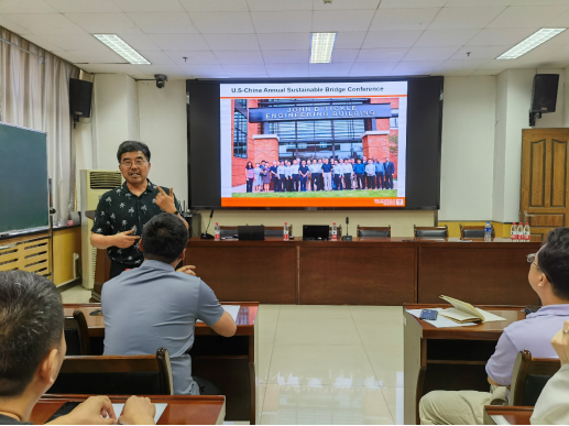 师生做了主题为“美国土木工程的最新发展”的学术报告。会议由桥梁工程系副主任周勇军教授主持。马教授围绕土木/结构工程的特点、历史发展、美国土木工程的就业形式、美国桥梁工程的现状及发展趋势等几个方面进行了详细阐述。报告结束后马教授就大家所关心的土木工程新型材料研究、有限元分析软件的使用、基础工程发展等问题进行了互动交流。本次报告内容深入浅出,学术氛围浓厚,讲解通俗易懂,引起了在座师生的极大兴趣。