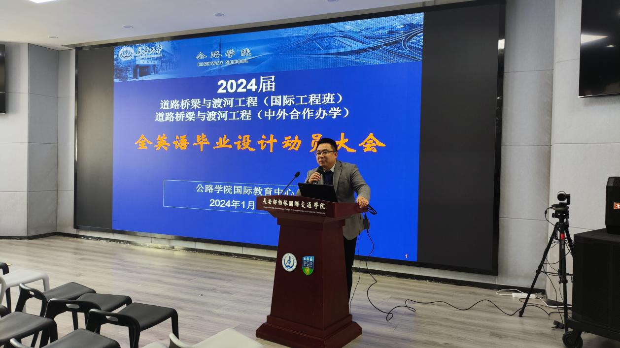 2024年1月11日下午2:00,国际教育中心召开2024届道路桥梁与渡河工程(国际工程班)、道路桥梁与渡河工程(中外合作办学)全英文毕业设计动员会。休闲小栈