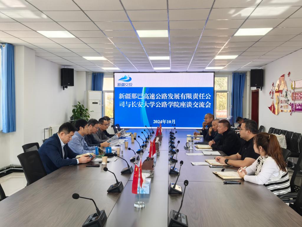 一行与新疆那巴高速公路发展有限责任公司座谈交流。那巴高速党支部副书记、董事、总经理李杰、总经理助理石建疆以及有关部门负责人参加座谈。汪海年介绍了学院科学研究、人才培养现状及校企合作情况。他表示,学院将在双方原有良好合作的基础上,搭建高效、深入的合作平台,为那巴高速公路建设提供科技、人才的支撑。李杰对休闲小栈