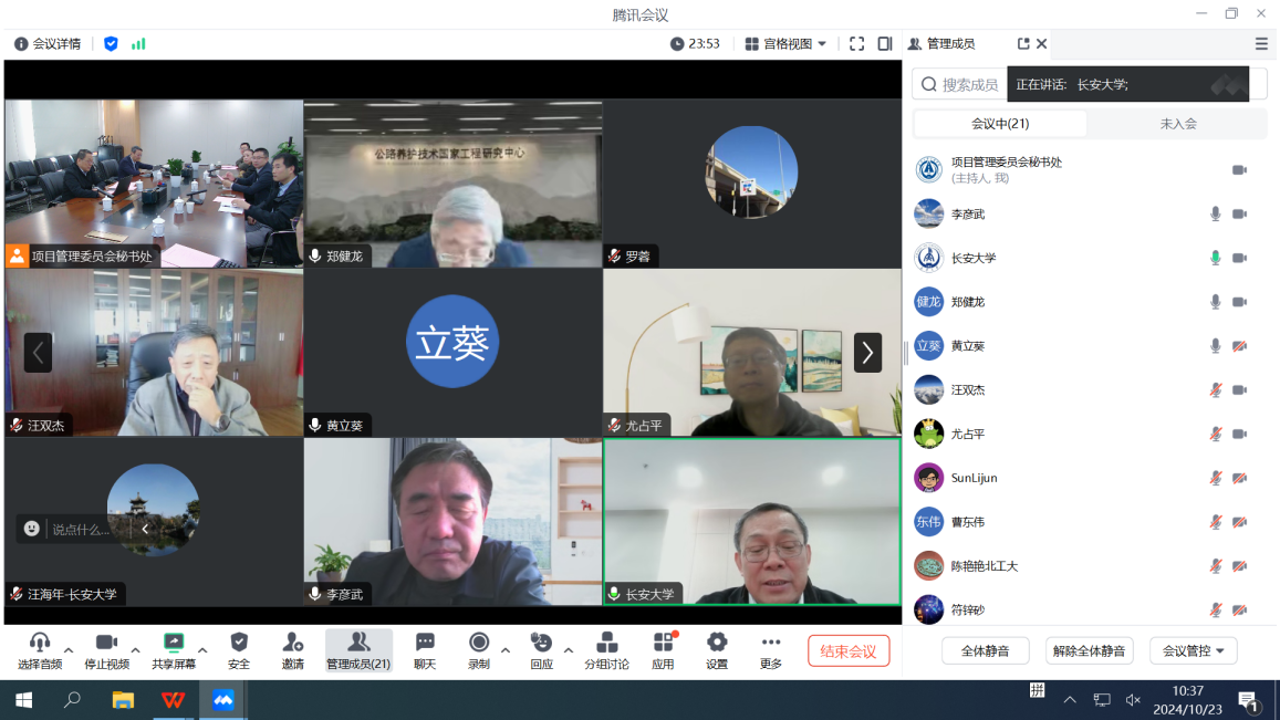 校长沙爱民,基金管理委员会主任、学术委员会副主任李彦武,学术委员会副主任、中交集团总工汪双杰等20名学术委员会委员参加会议。会议以线上线下混合方式进行,秘书处在休闲小栈