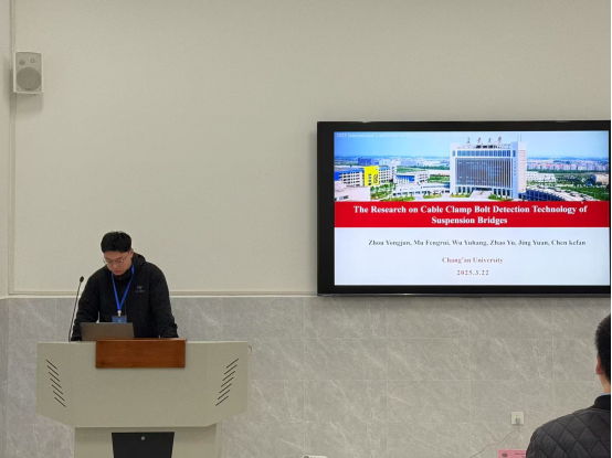 硕士生穆丰睿介绍了悬索桥索夹螺栓检测技术