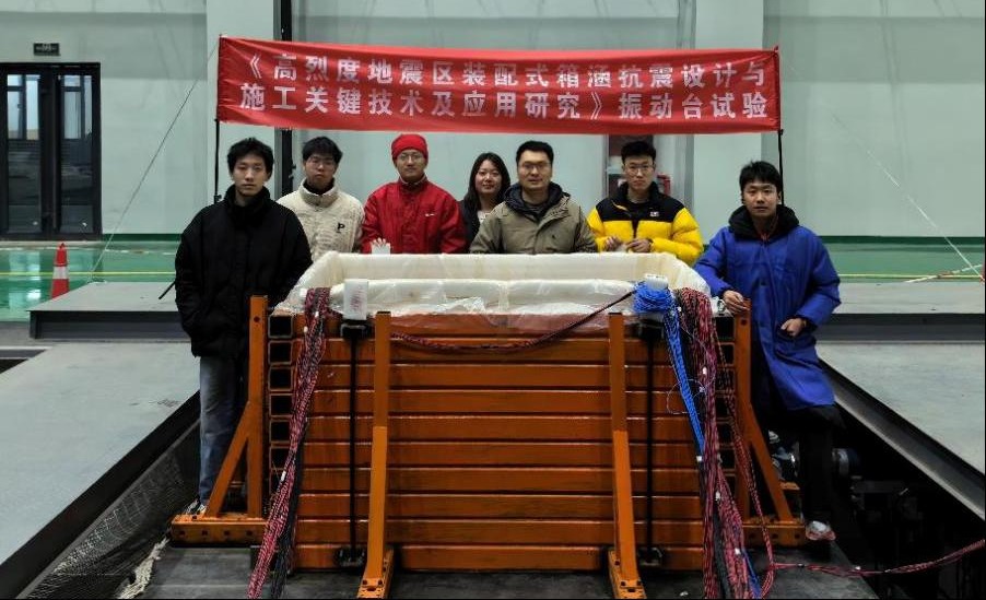 本次试验于2026年1月18日开始至2月5日,历时近二十天,累计进行了数百种工况的振动试验。桥梁与结构实验中心为装配式箱涵的结构动力特性、地震响应测试提供了先进的试验手段和技术支持,为后续优化装配式箱涵结构选型、提升其抗震性能与工程韧性提供了丰富的试验数据支撑。