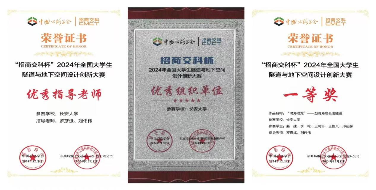 中国公路学会、招商局重庆交通科研设计院有限公司主办,中国公路学会隧道工程分会、重庆交通大学承办的“招商交科杯”2024全国大学生隧道与地下空间设计创新大赛全国总决赛于2024年12月1日在重庆举行。经过一天激烈的角逐比拼,由休闲小栈 罗彦斌教授和刘伟伟副教授指导,赵建、李屹、王怡凡、王琦轩和邢远赫组成的队伍斩获一等奖,休闲小栈 获得优秀组织单位,罗彦斌教授和刘伟伟副教授获得优秀指导教师