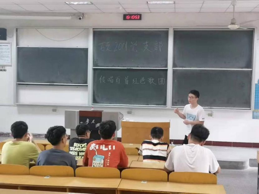 研究生党支部在党委号召下于7月5日以来陆续开展“五个一百”系列学习活动,本次活动以学习百首红色歌曲为主题展开。