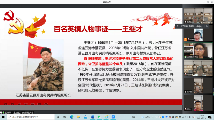 研究生党支部在党委号召下于7月5日以来陆续开展“五个一百”系列学习会议,本次学习教育以学习百名英模人物为主题展开。