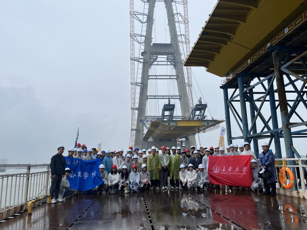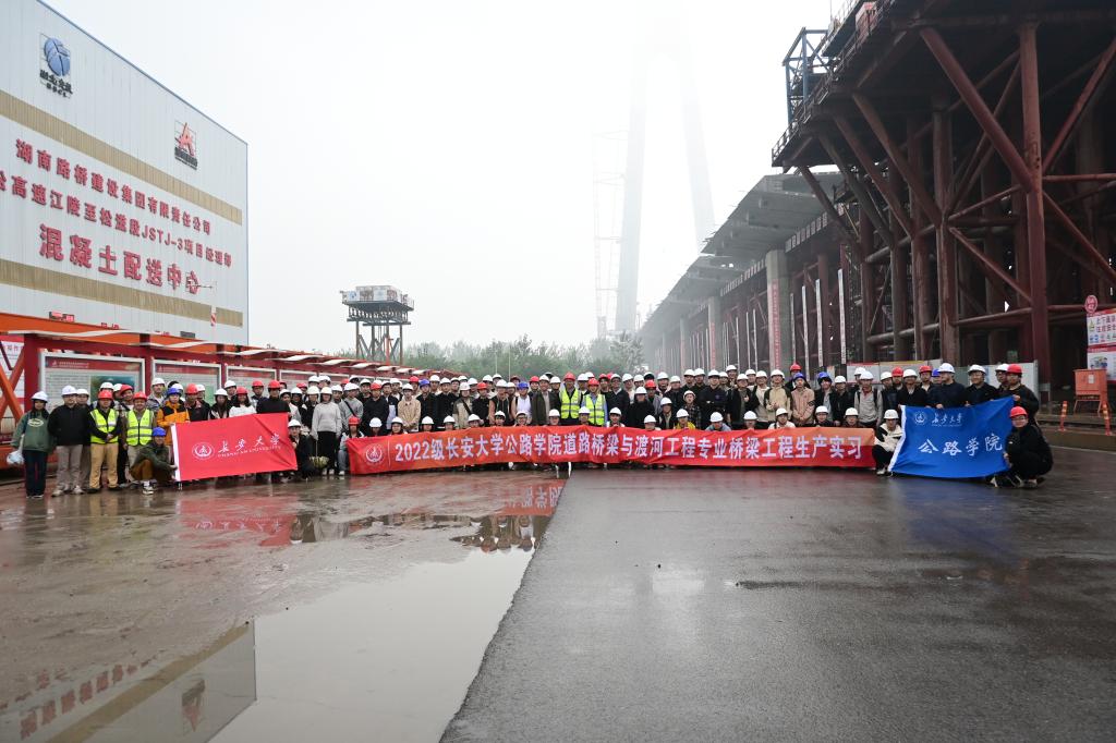 2025年10 月 10 日至 24 日,桥梁工程系组织2022 级 121 名道路桥梁与渡河工程专业本科生在湖北松滋系列长江特大桥建设工地开展了桥梁工程生产实习。本次实习指导教师团队由桥梁工程系副主任陈峰牵头,桥梁工程系张永飞、院素静、刘江、杨干、陈柯帆等教师参加,以“外业观摩+内业研习”的教学方式,聚焦三座行业标杆桥梁的核心技术与施工实践,邀请行业专家现场授课,让学子在实践教学中夯实专业基础、领略工程前沿。