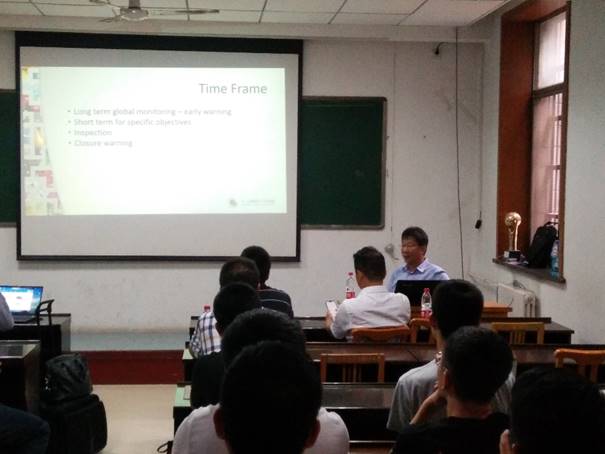 Professor Peter Chang's report titled "Bridge Monitoring and Inspection." He explained the damage mechanism of the bridge structure in detail, and systematically introduced the latest research progress and application status of the sensor technology, and put forward the prospect of bridge monitoring and monitoring technology. Subsequently, Professor Sun Lu gave an academic report entitled "Structural Health Operation Monitoring and Intelligent Inspection System of Nanjing Yangtze River Bridge." He Highlighted the BIM-based health monitoring system (BIM-SHM) used in the Nanjing Yangtze River Bridge. Also, He explained the contents of automatic monitoring, traffic load monitoring, manual inspection and maintenance management, comprehensive early warning and safety assessment. In the interactive session, the two professors carefully answered the questions of teachers and students in detail and put forward thought-provoking innovative ideas.