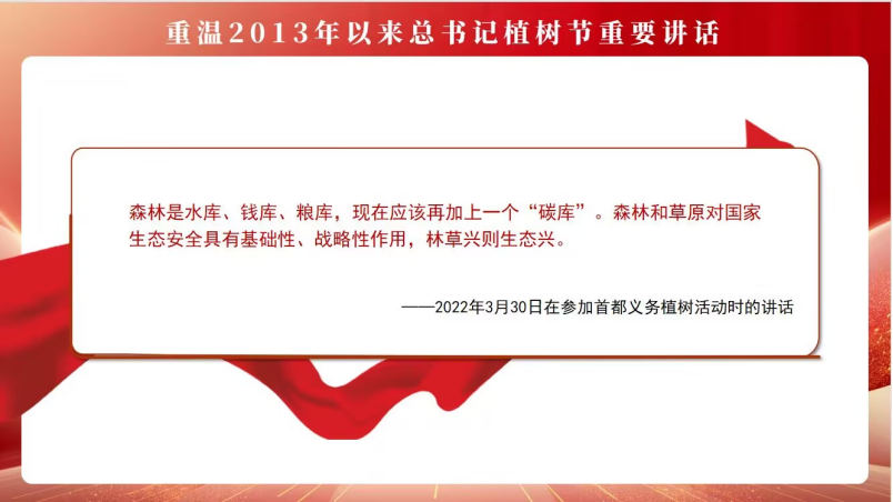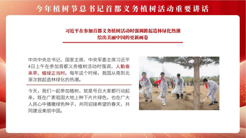 2023年4月4日上午,习近平总书记在参加首都义务植树活动时号召大家都做生态文明建设的实践者、推动者。为深入贯彻落实总书记在植树节活动中的重要讲话精神,休闲小栈