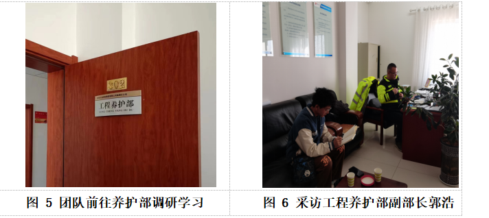 之后实践团队前往陕西交控集团了解榆靖高速,榆靖高速路起于榆林孙家湾,止于靖边石家湾,路线基本与古长城平行,全长116公里,双向四车道,设计时速100公里,为全封闭、全立交高速公路,高速路工程总投资17.6亿元,陕西交控集团榆靖分公司工程养护部副部长郭浩在采访中谈到:“在路基处理上,这边主要有风积沙的问题,当时采用了水坠沙的方法,对路基进行处理,确保达到规定的压实度,第二是绿化,为了确定绿植的成活率,也想了很多办法,比如飞播造林等技术。” 在公路建设方面,作为我国第一条沙漠高速公路,榆靖高速起到了探索、积累经验的作用,一定程度上规范了今后国内沙漠高速公路施工建设,并在多个方面取得了全国首创的经验、突破性成果。