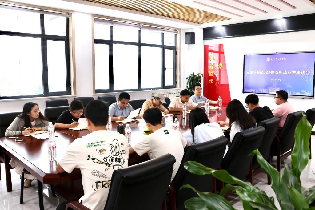于6月20日在弘毅大厦二楼党建活动室举办2024届本科毕业生座谈会。学院党委书记张久鹏、学生工作办公室主任卢毅、团委书记张吉宁、毕业班辅导员刘亦澜、孔令超及2024届本科毕业生代表参加座谈。座谈会由毕业生辅导员王达主持。
