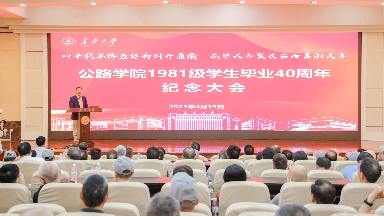 1981级学生毕业40周年纪念大会在南校区学术交流中心报告厅举行。大会由81级路18班校友吴明先主持。