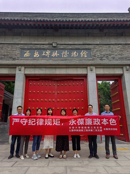 道路工程系第二党支部与校医院第三党支部赴西安碑林博物馆廉政教育基地联合开展党纪学习教育主题党日活动。
