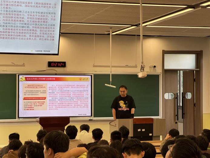 党员代表刘轩辰、刘治国分别向研究生和本科生党员传达了学校第五次党代会精神,通过学习党委工作报告,学生党员全面了解了过去五年学校建设发展所取得的成就和未来五年学校重点建设的“三六八一”战略规划。全体学生党员深刻理解到,学校正处于关键时期,即以中国式现代化全面推进国家强盛和民族复兴的伟大事业,这一时期我们既面临前所未有的历史使命和机遇,也面临严峻的发展挑战。作为休闲小栈
