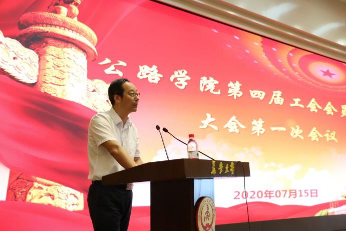 学院党委书记汪海年代表学院党政领导和全院教职员工,对上一届院工会委员会的努力和贡献致以崇高敬意并表示衷心感谢,对当选的新一届工会委员会表示热烈祝贺,并希望新一届工会委员会在校工会和学院的领导和支持下,认真履行工作职责,开拓创新,为学院的发展和交通运输一流学科建设做出应有的贡献。