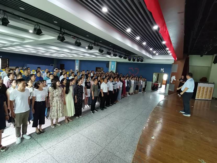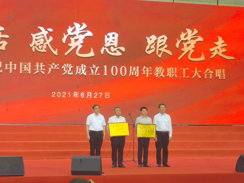 教师在院长陈建勋、院党委书记汪海年的带领下,由院党委副书记刘徐、院工会副主席路西利共同组织,选取了能表达全院教师心声的“没有共产党就没有新中国”、“不忘初心”两首歌曲,致敬我们党团结带领中国人民不懈奋斗的光辉历程、伟大贡献和历史启示,也深刻铭记“中国共产党人的初心和使命,就是为中国人民谋幸福,为中华民族谋复兴。”