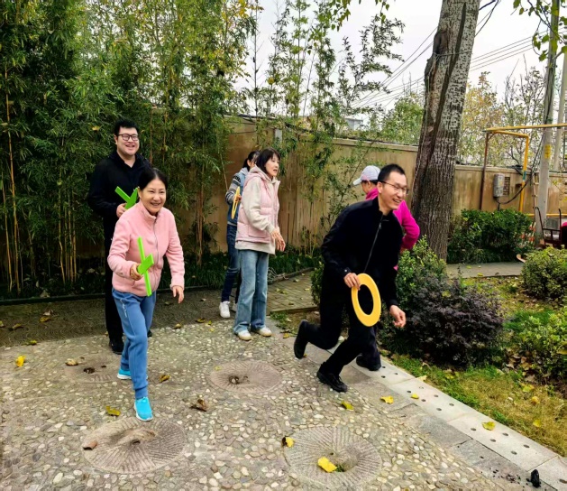 参观结束后,为增进同事间的沟通与情谊,工会在风景如画的馆区周边组织了丰富的团建活动。在轻松愉快的氛围中,大家参与了团队听歌词猜歌名,推冰壶,接力五子棋等团建活动。平日里在讲台和实验室里严谨专注的教授、学者们,此刻尽情投入,现场欢声笑语不断,其乐融融。